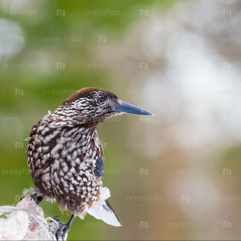 Обычный сосновый орех, закрывающийся на размытом фоне