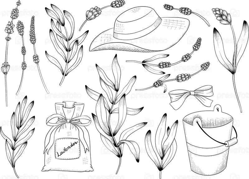 Выгравированный ботанический эскиз лаванды, ручной вектор с черным чернилом на белой бумаге, натуралистические детали и тонкая линейная работа