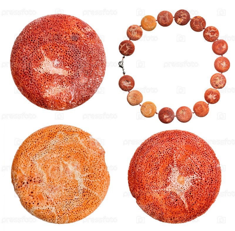 Коралловое ожерелье и круглые бусы изолированы