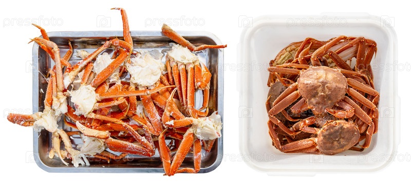 Коробки с недавно пойманными камчатскими крабами изолированы