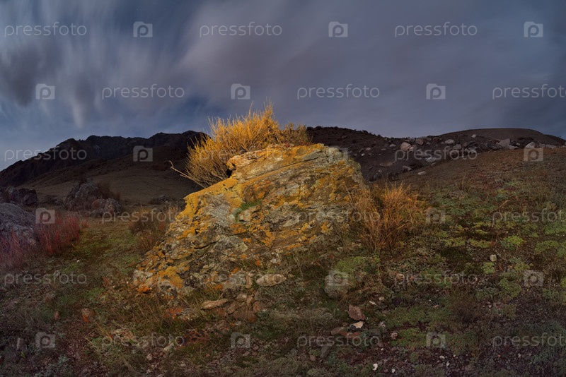 Юг Западной Сибири, Алтайские горы.Осенняя лунная ночь в каменной долине горной реки Катун недалеко от деревни Иния