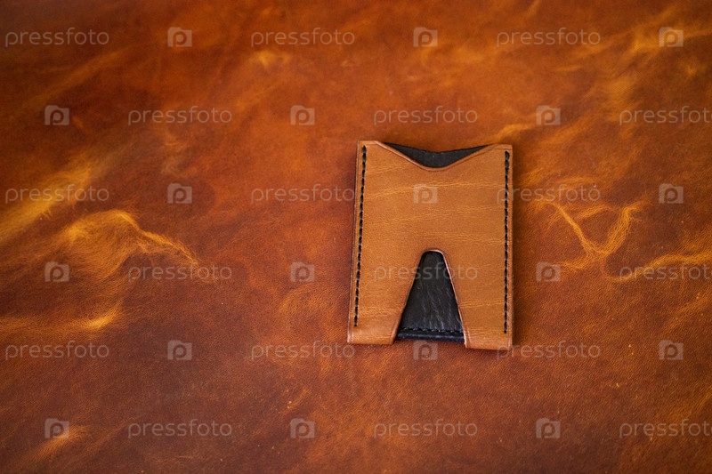 Минималистский коричневый кожаный карточный держатель на коричневом фоне