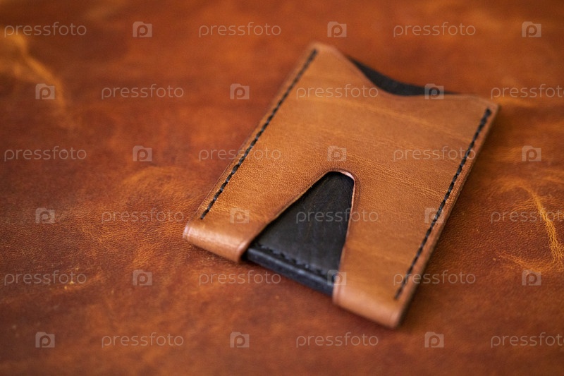 Минималистский коричневый кожаный карточный держатель с гладким резкой-o