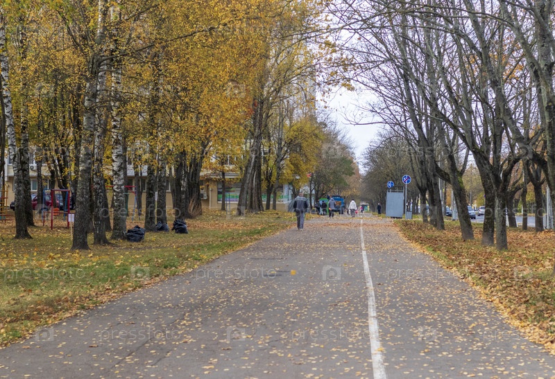 Прогулка по парку покрыта красочными осенними листьями