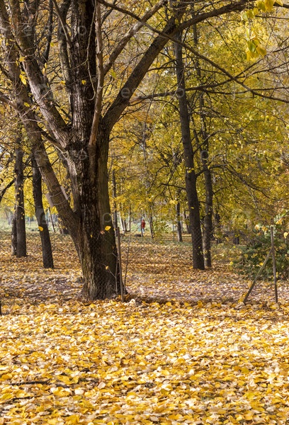 Прогулка по парку покрыта красочными осенними листьями