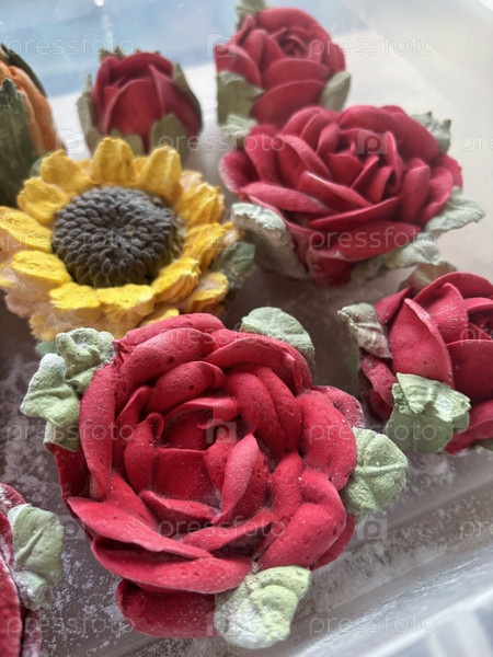 Дом маршмелоу, цветы маршмелоу, розы и подсолнечник, Вид сверху