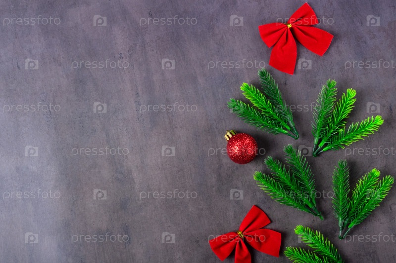 Рождественская плоская композиция с смоковницами и ювелирными украшениями на темно-сером столе