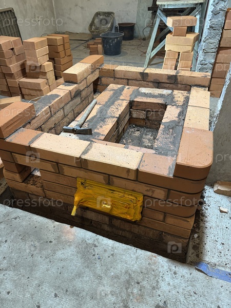 Строительство отопительной печи, кирпичное ядро плиты с ее крышками