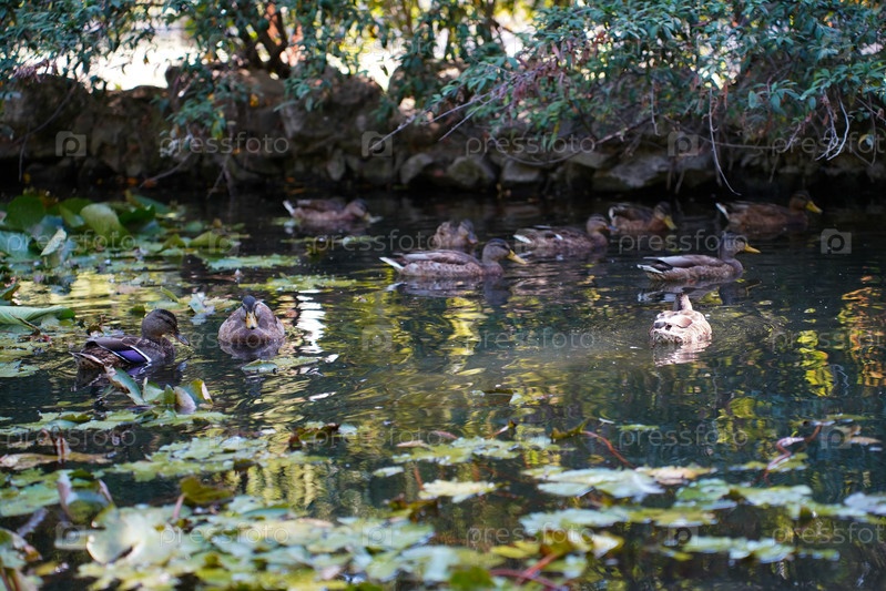 Водяные лилии и утки в пруду