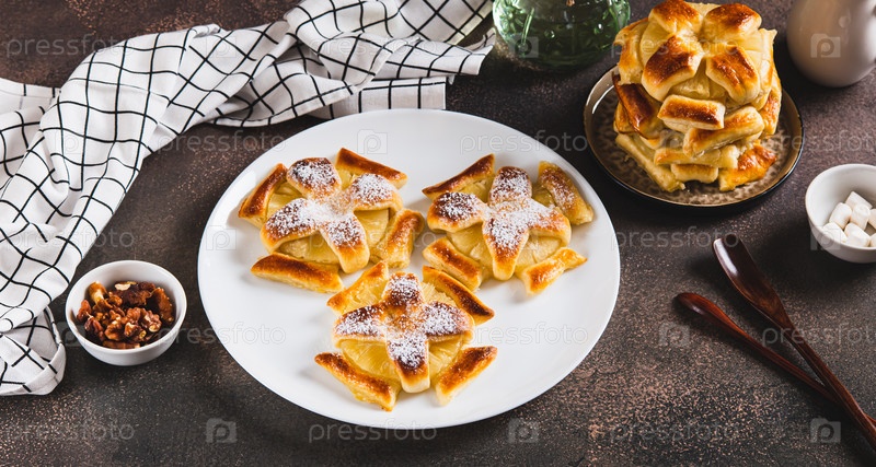 Сладкие торты с ананасом в сахарном порошке на столе веб-баннер