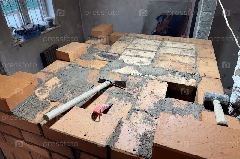 Кирпичная плита для отопления. потолок канала