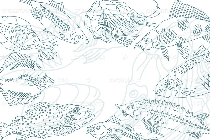 Красочные морские существа плавают в сложных узорах, демонстрируя водную жизнь с яркими деталями