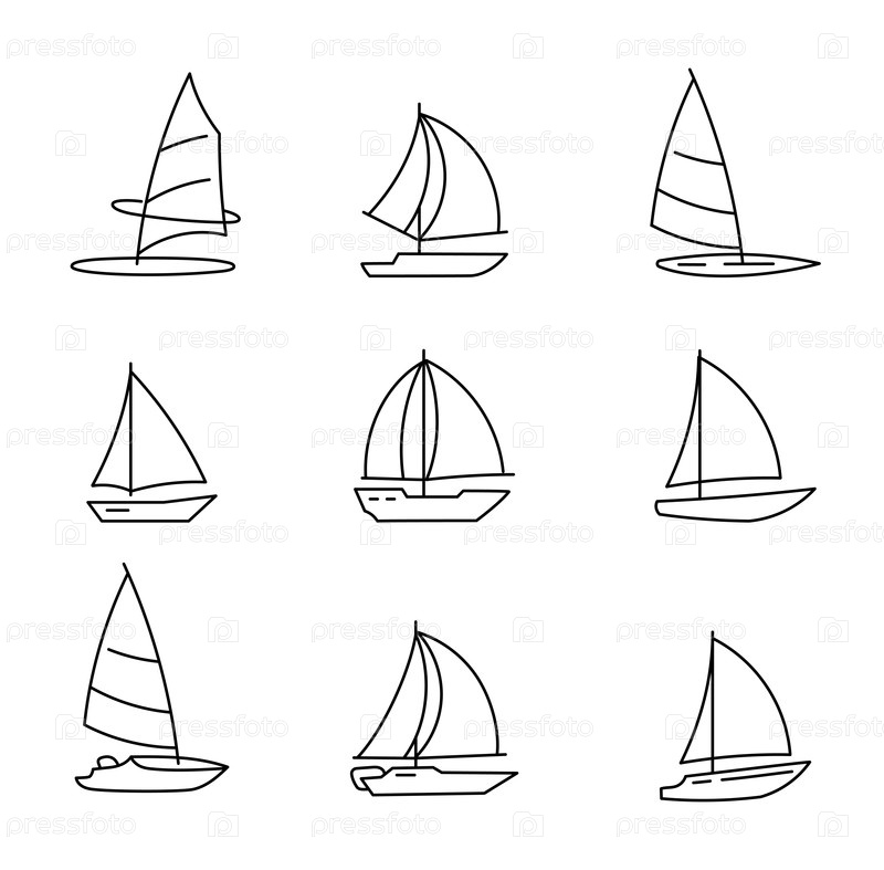 Набор редактируемых икон векторных линий с парусниками разного дизайна и ориентации. идеально подходит для графического дизайна, брендинга и творческих проектов, связанных с парусным плаванием