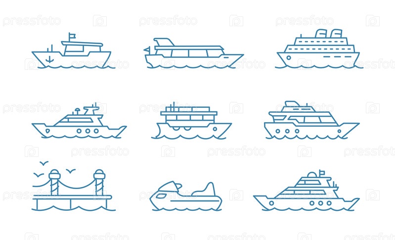 Различные типы лодок и кораблей представлены в простом линейном стиле для векторных проектов
