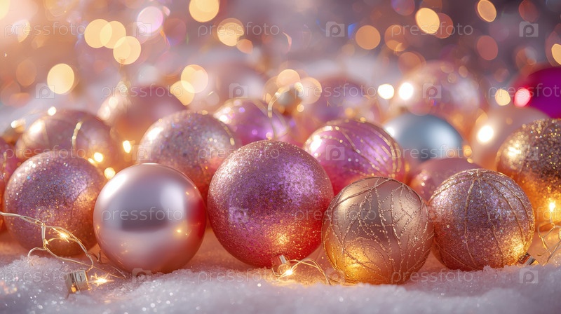 Прекрасный рождественский фон, баннер из стеклянных рождественских шаров