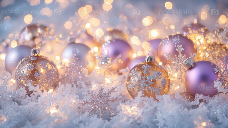 Прекрасный рождественский фон, баннер из стеклянных рождественских шаров