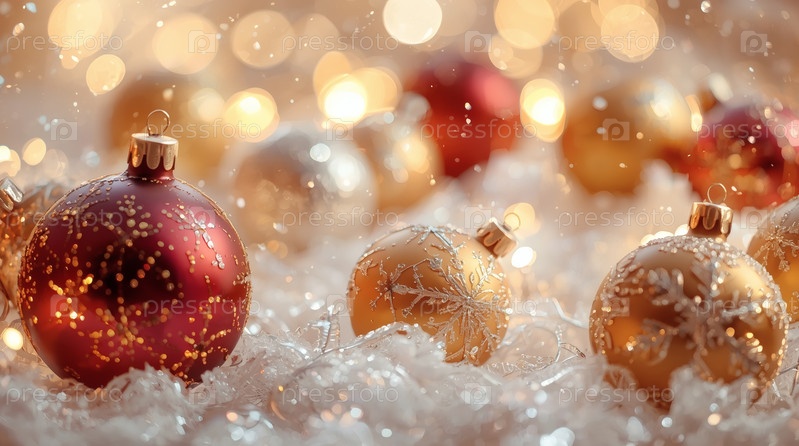 Прекрасный рождественский фон, баннер из стеклянных рождественских шаров
