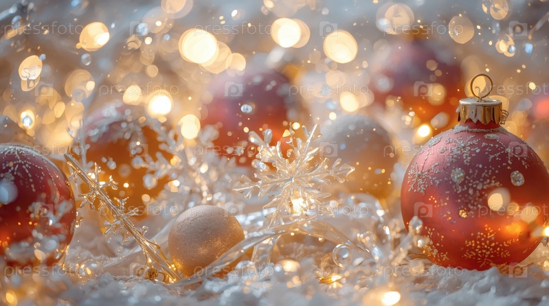 Прекрасный рождественский фон, баннер из стеклянных рождественских шаров