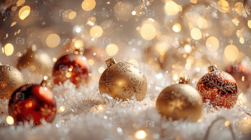 Прекрасный рождественский фон, баннер из стеклянных рождественских шаров