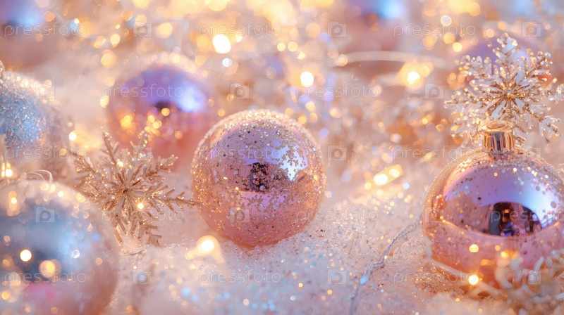 Прекрасный рождественский фон, баннер из стеклянных рождественских шаров
