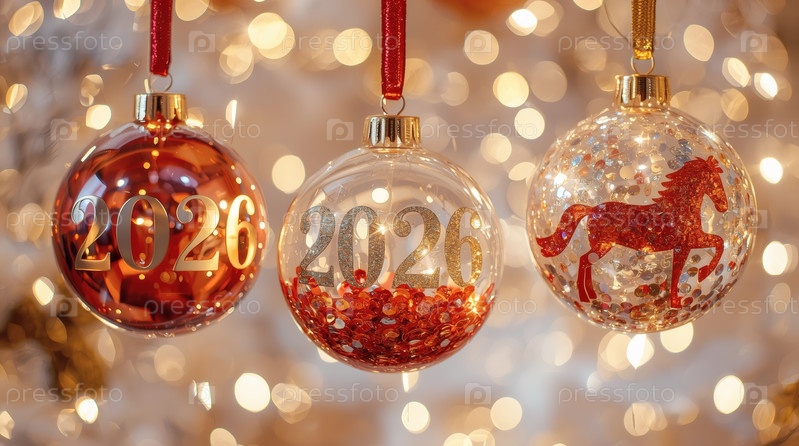 Прекрасный рождественский фон, баннер из висящего стекла Рождественские шары и коневые подвески