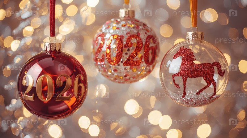 Прекрасный рождественский фон, баннер из висящего стекла Рождественские шары и коневые подвески