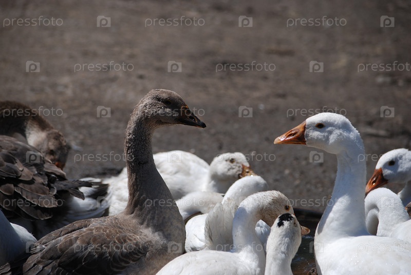 Домашние гуси во дворе