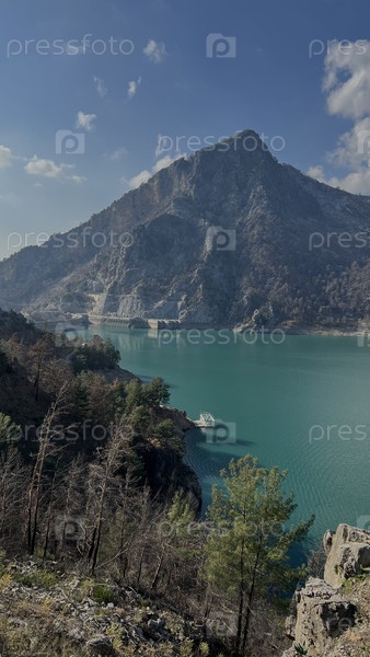 Горное озеро с бирюзовой водой и скалистыми склонами