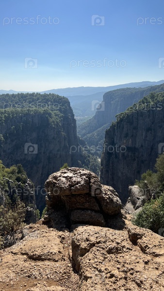 Скалистый горный каньон с смотровой площадкой на краю скалы