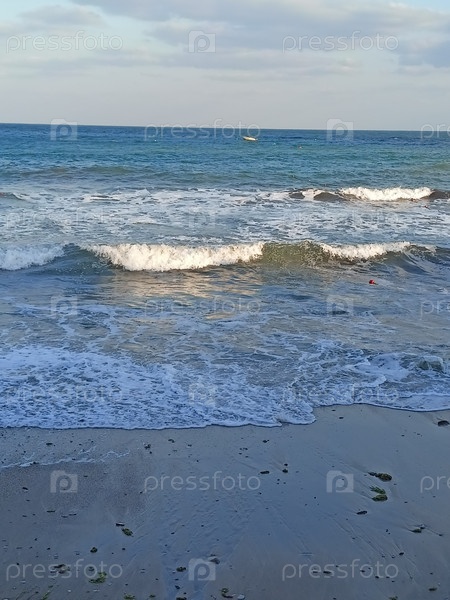 Волны теплого моря, раскачивающиеся на песчаном пляже