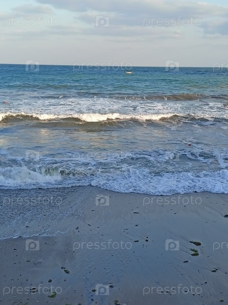 Волны теплого моря, раскачивающиеся на песчаном пляже