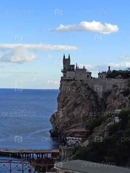 Замок на краю высокой морской скалы над голубым морем