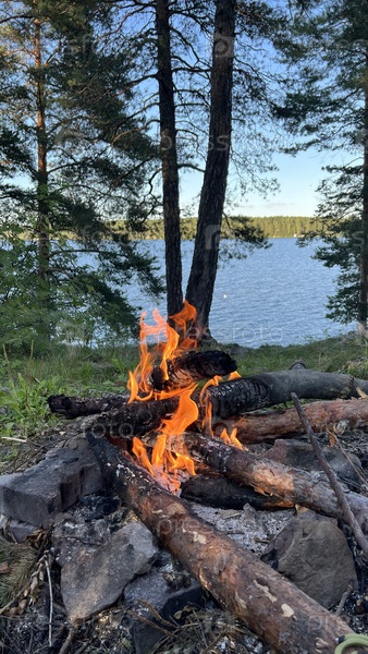 Огонь у лесного озера