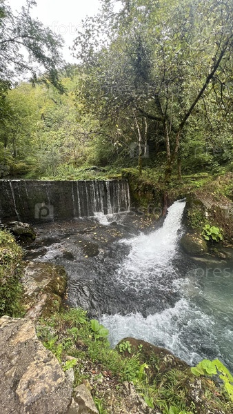 Лесной водопад и бирюзовая река