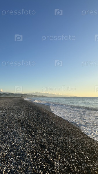 Песчаный пляж и утреннее море