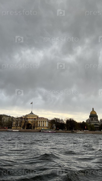 Облачный день на исторической набережной с золотым куполом собора
