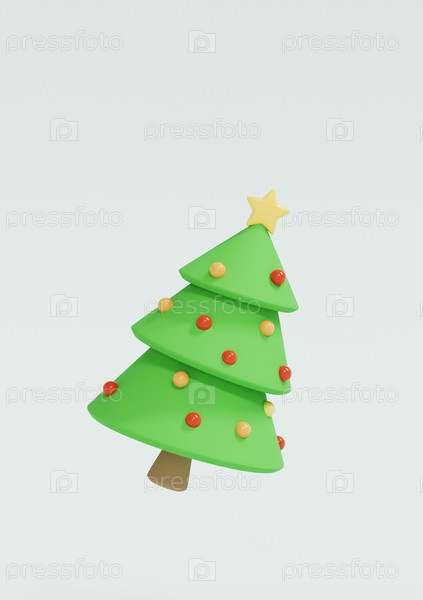 3D-рендер рождественской елки на светлом фоне, без ИИ