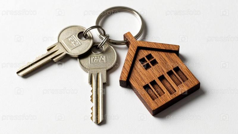 Ключи от нового жилья с деревянным ключом в виде дома