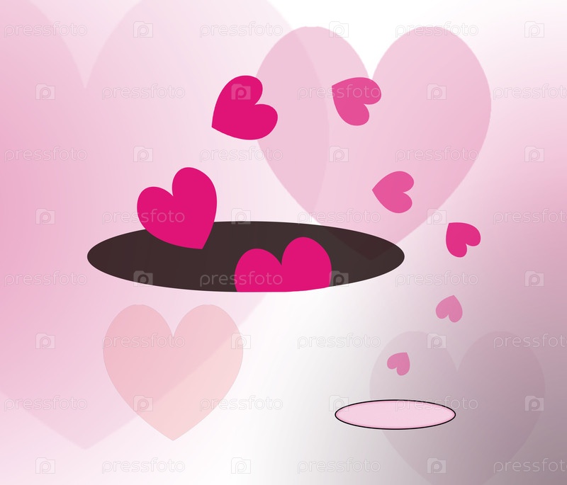 Иллюстрация с розовыми сердцами на фиолетовом фоне