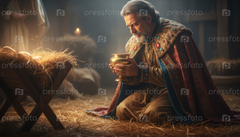 Символическая сцена преданности, связанная с традицией зимних праздников, представляющая духовный ритуал подарка и вневременное культурное повествование