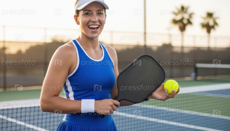 Улыбающийся игрок в маринбол позирует на солнечном корте с гребнем и мячом, представляющими здоровый образ жизни, инклюзивные спортивные сообщества и быстро растущую тенденцию к маринболу