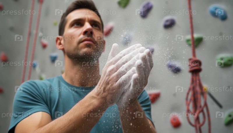 Алпинист чихает в руках, что является тренировкой, ориентированной на силовую подготовку внутри помещений и тенденции городского приключения