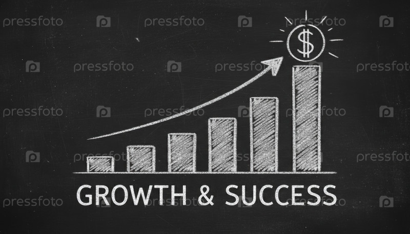 Диаграмма из черепицы поднимается до блестящей долларовой монеты на доске, иллюстрируя рост бизнеса, финансовый успех и стратегическое планирование