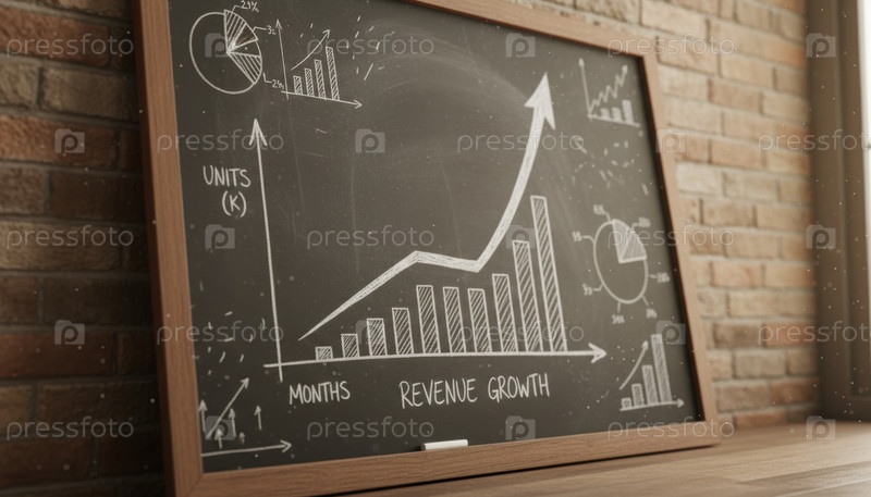 Таблица с растущим графиком роста доходов и диаграммой данных, успешной концепцией стартапа, финансовым планированием и долгосрочной бизнес-стратегией