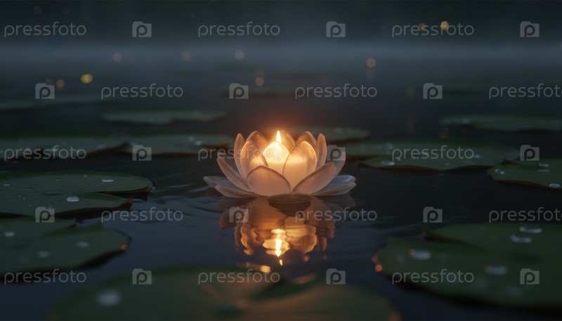 Светлая лотосная свеча, плавающая ночью на темной воде, является мирным символом медитации, мемориальных церемоний и духовного света во время Весак-Обона или Фестиваля рек