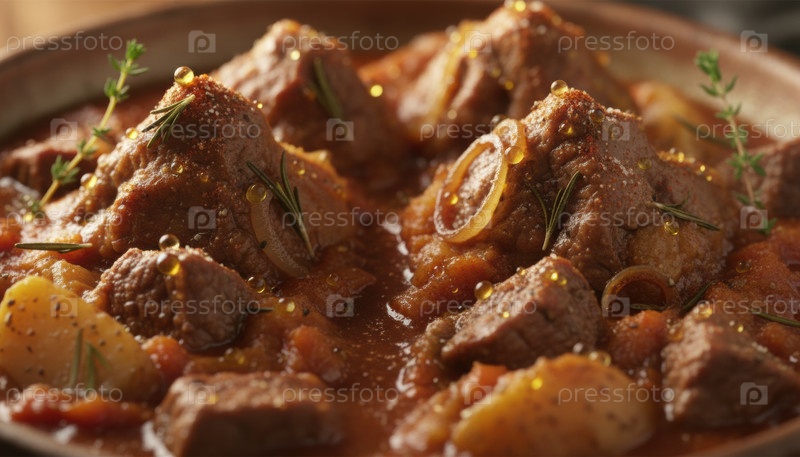 Сердечное тушеное с картофелем, травами и богатым томатным бульоном, побуждающее к домашним блюдам, медленной зимней кухне и деревенским семейным ужинам