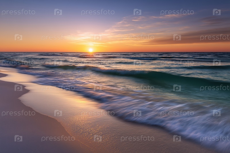 Красивый закат на пляже, естественный состав, длительная экспозиция