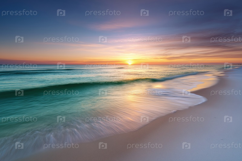 Красивый закат на пляже, естественный состав, длительная экспозиция