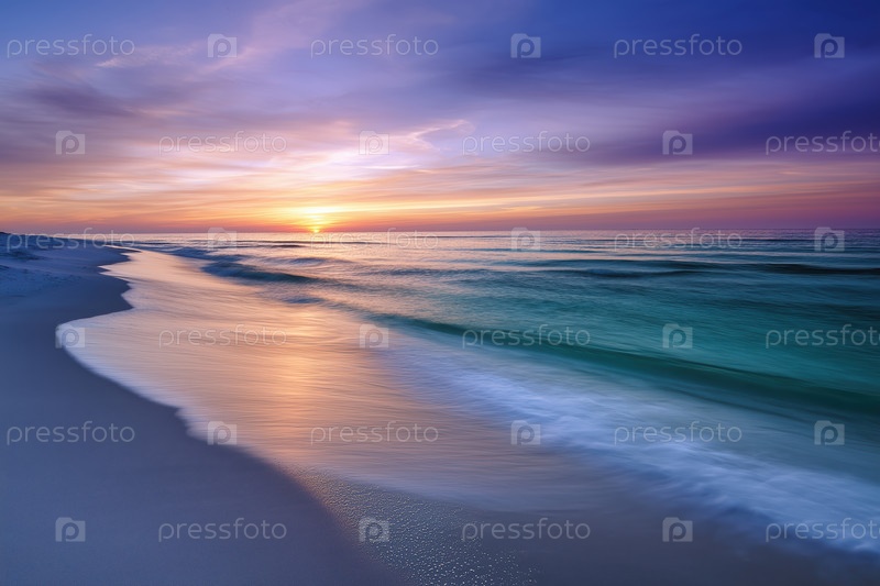 Красивый закат на пляже, морской пейзаж, естественная композиция