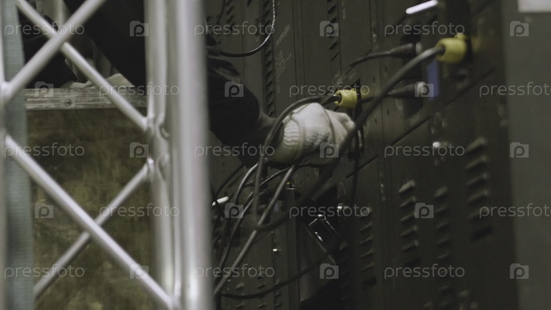 Инженер-электрик тестирует электрические установки и провода на системе защиты реле. Контрольный блок. Выключатель среднего напряжения. Электроинженер устанавливает промышленный кабель в предохранительную коробку